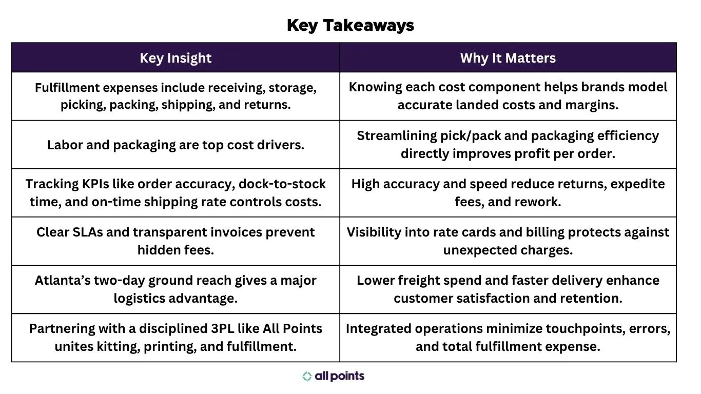 - As a family-owned 3PL with nearly 30 years of experience, All Points emphasizes operational discipline, predictable SLAs, and collaborative partnership to help brands control costs without sacrificing service quality.